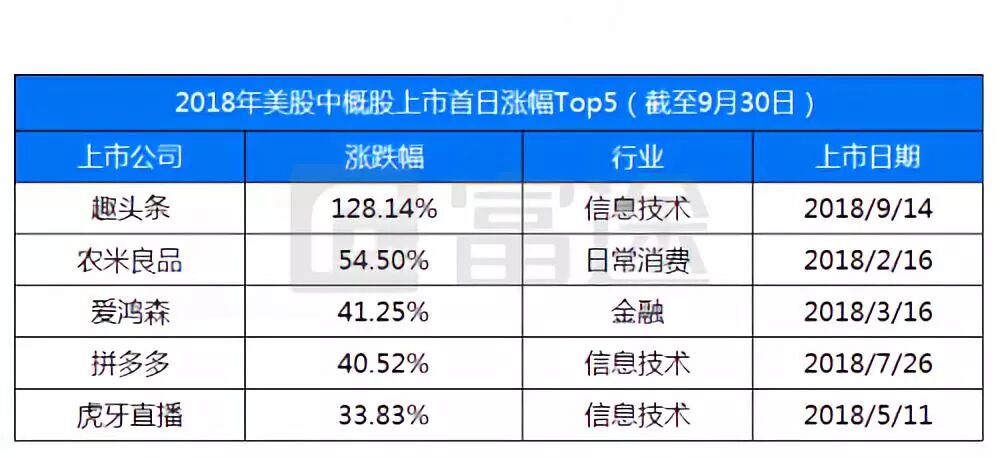 前段时间,趣头条上市首日暴涨超过100%之势吸引了不少投资者的目光。那么,今年中概股在美股新股市场表现如何呢?