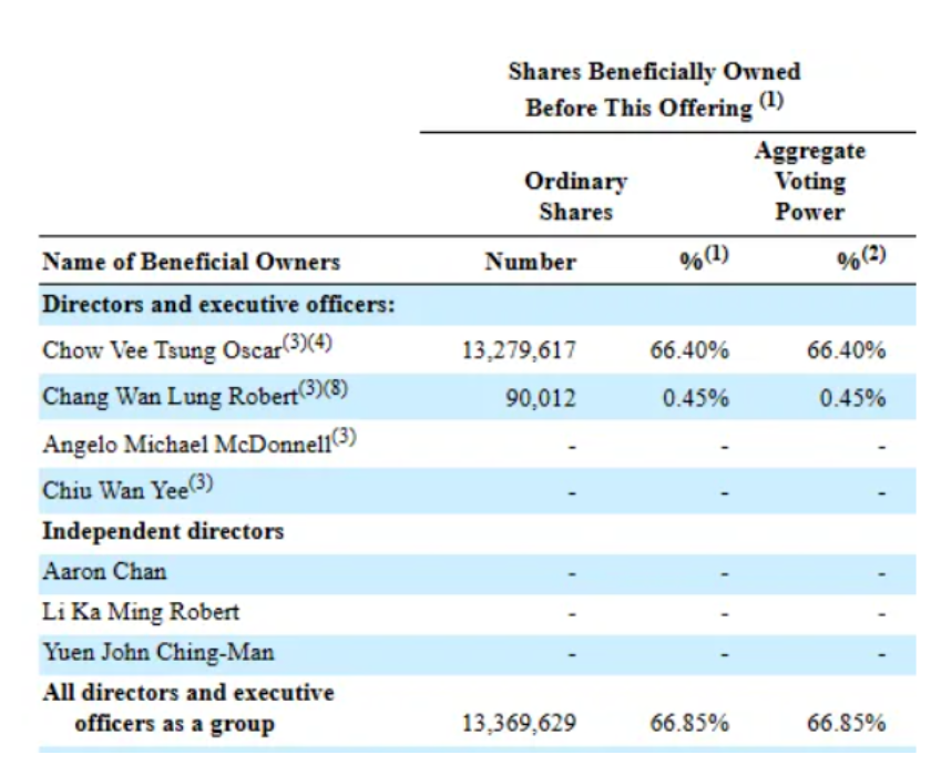 该公司目前在香港和澳大利亚拥有45家餐厅,通过自营品牌和特许国际品牌(如Chatime和Duan Chun Zhen)提供一系列休闲餐饮。招股书显示,2024-2025财年(截至3月31日),Cafe Deco营收分别为8917万美元、1.08亿美元,相应的净利润分别为-976万美元、-78万美元。IPO前,Chow Vee Tsung Oscar持股66.40%,拥有66.40%的投票权。Chang Wan Lung Robert持股0.45%,拥有0.45%的投票权。