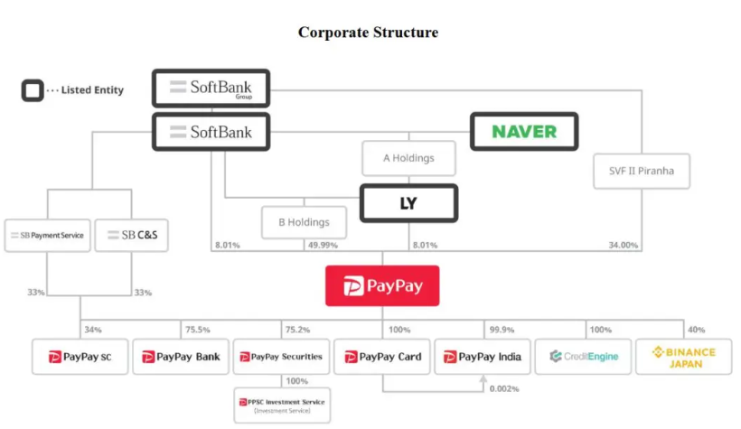 IPO前,软银旗下B Holdings Corporation持股为49.99%,软银旗下SVF II Piranha (DE) LLC持股为34%,软银持股8.01%,软银旗下LY Corporation持股为8.01%。